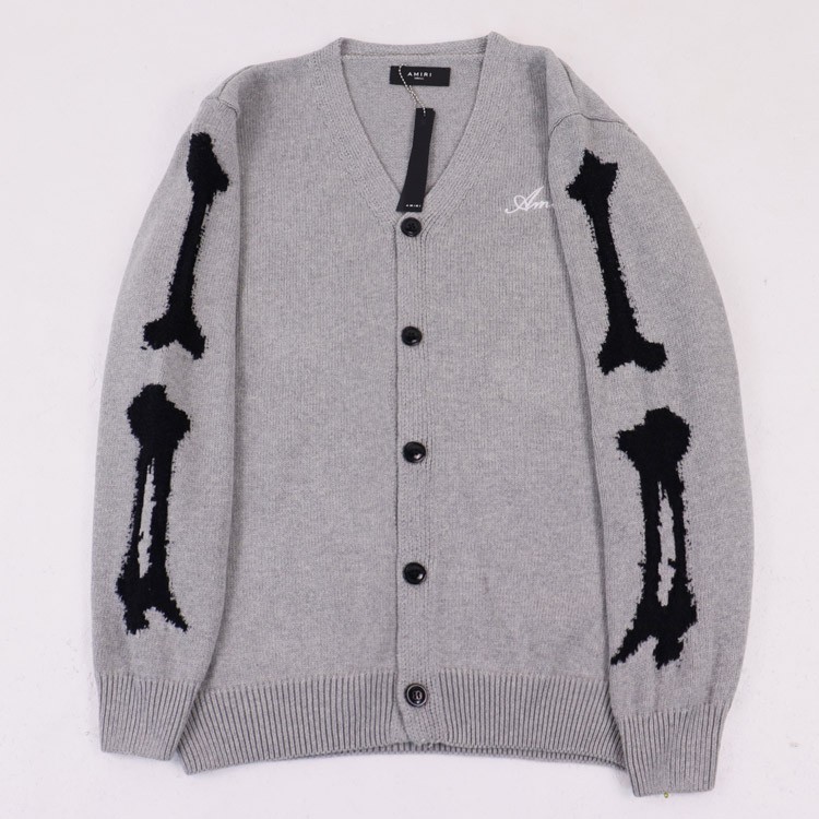 AMIRI Embroidered Logo Single-Breasted Cardigan V-Neck Long-Sleeve Knit Sweater-4558
