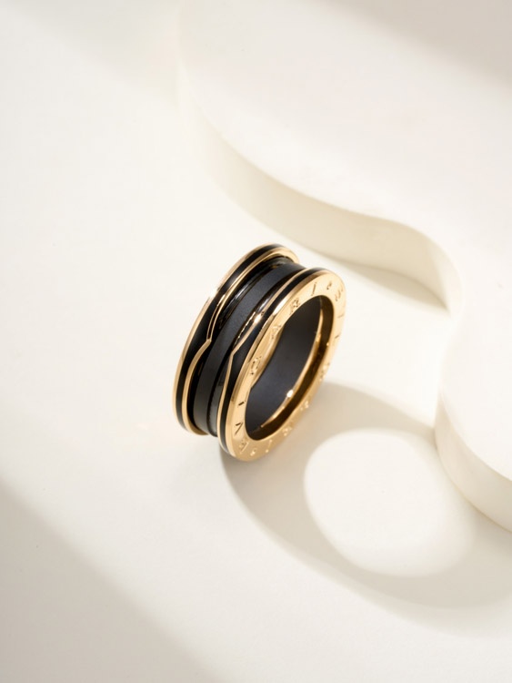 Bulgari ceramic rose gold ring-3839