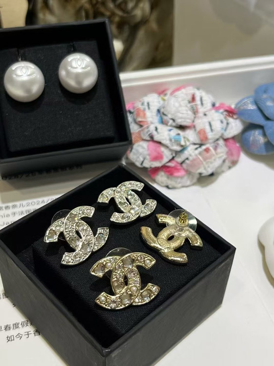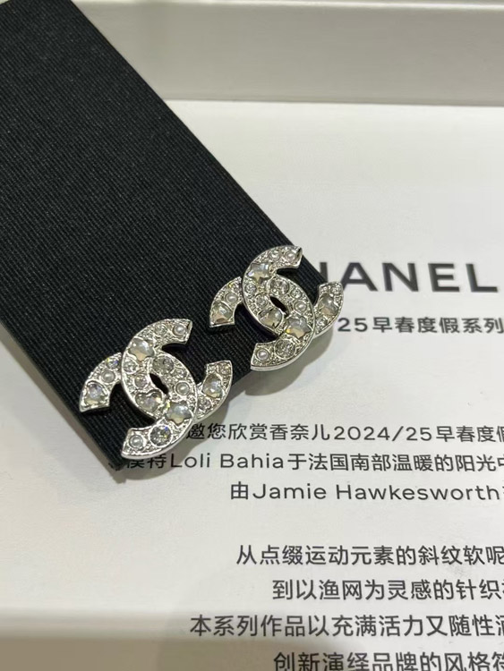Home > Chanel star heart crystal pearl silver double C earrings-3752