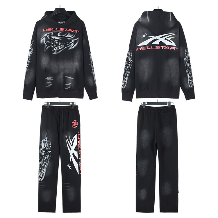 Hellstar Hooded Long-Sleeve Sweatshirt and Sweatpants Tracksuit-4553