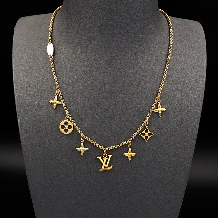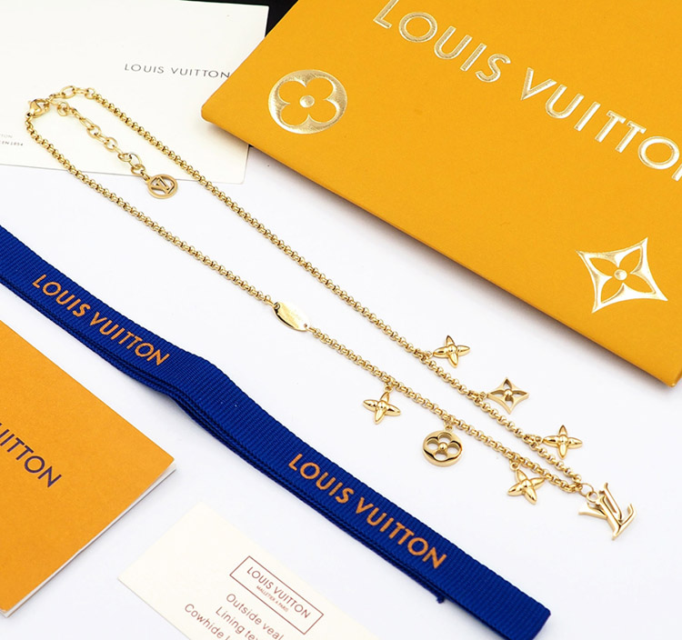 Louis Vuitton LV Adjustable Letters and Floral Gold Necklace-4073