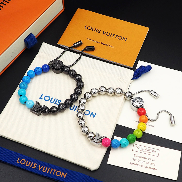 Home > Louis Vuitton LV blue letter incarnation pendant and inscription on polished metal beads Bracelet-3948