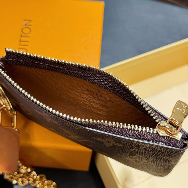 Louis Vuitton LV brown old flower canvas chain key bag zipper coin-4049