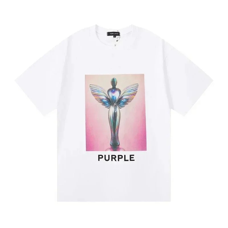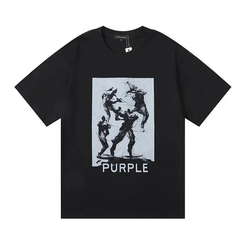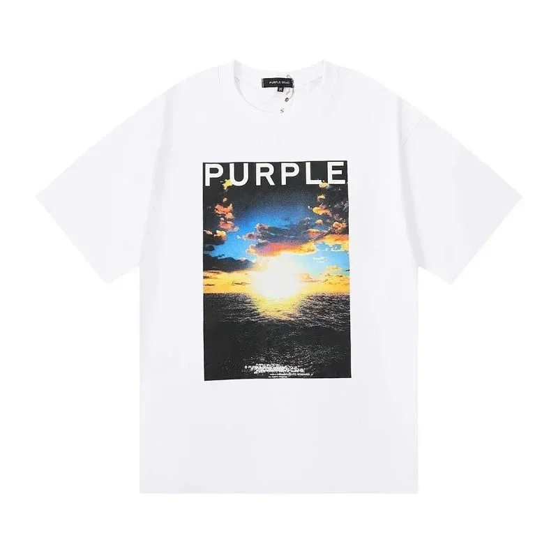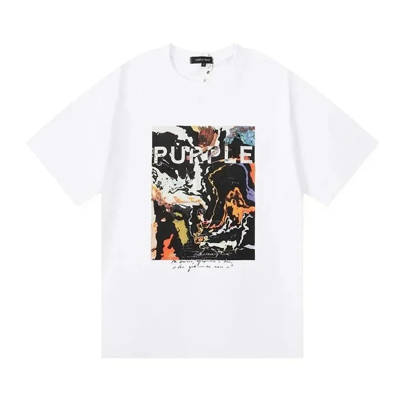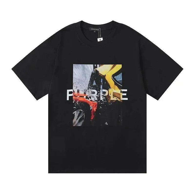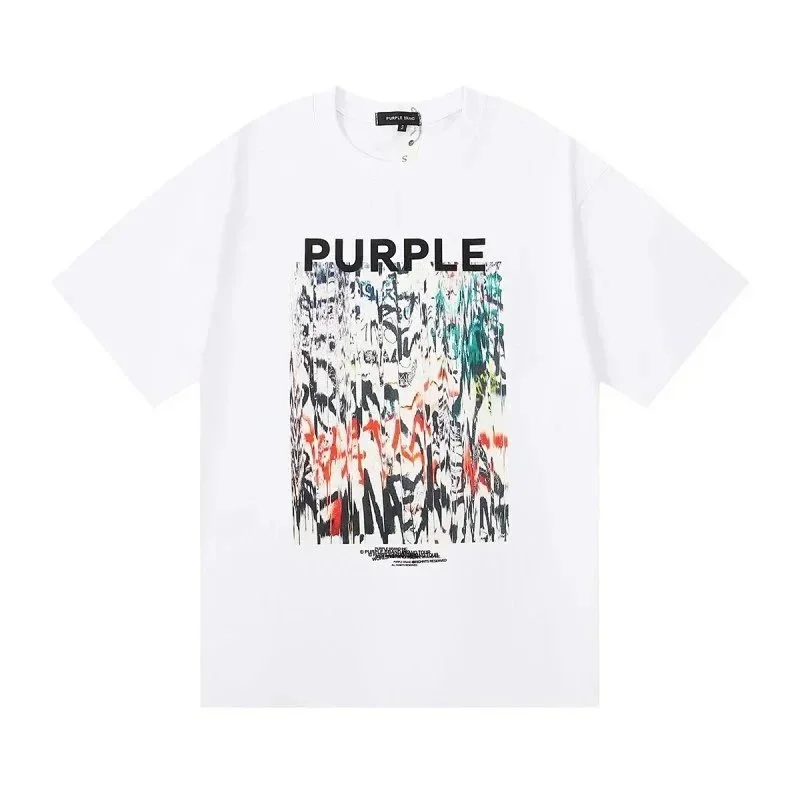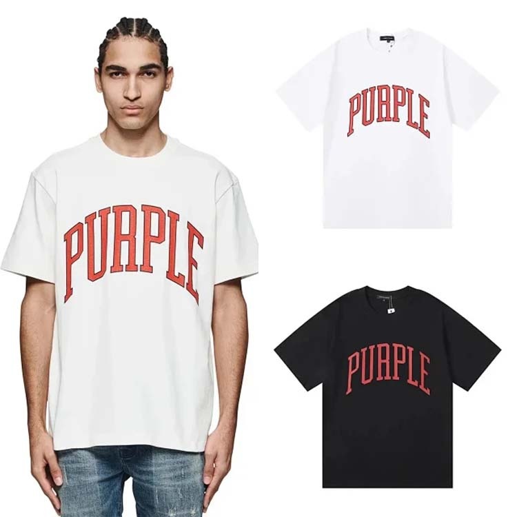 Home > PURPLE Letter pattern printed short-sleeved T-shirt for men and women American high street half-sleeve-1886