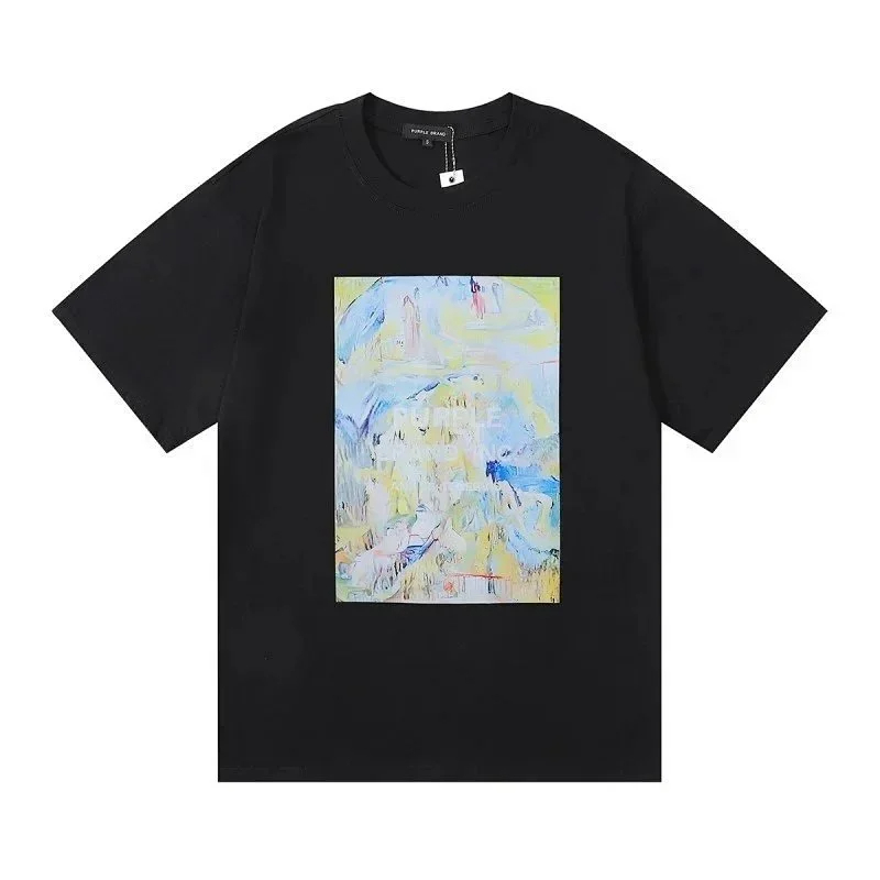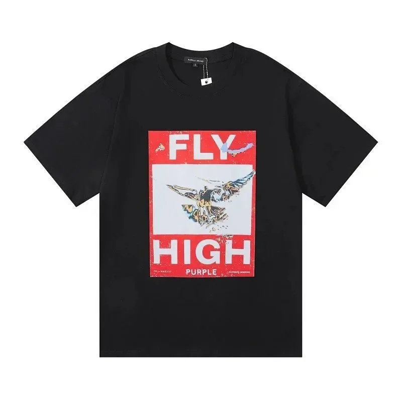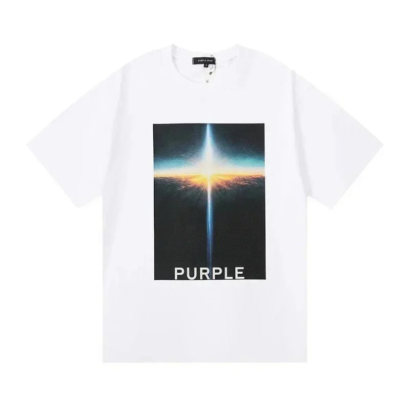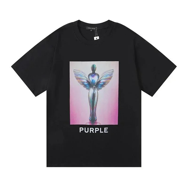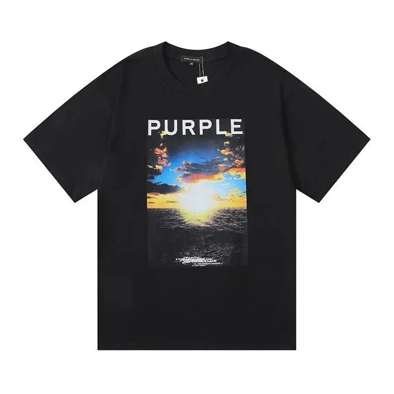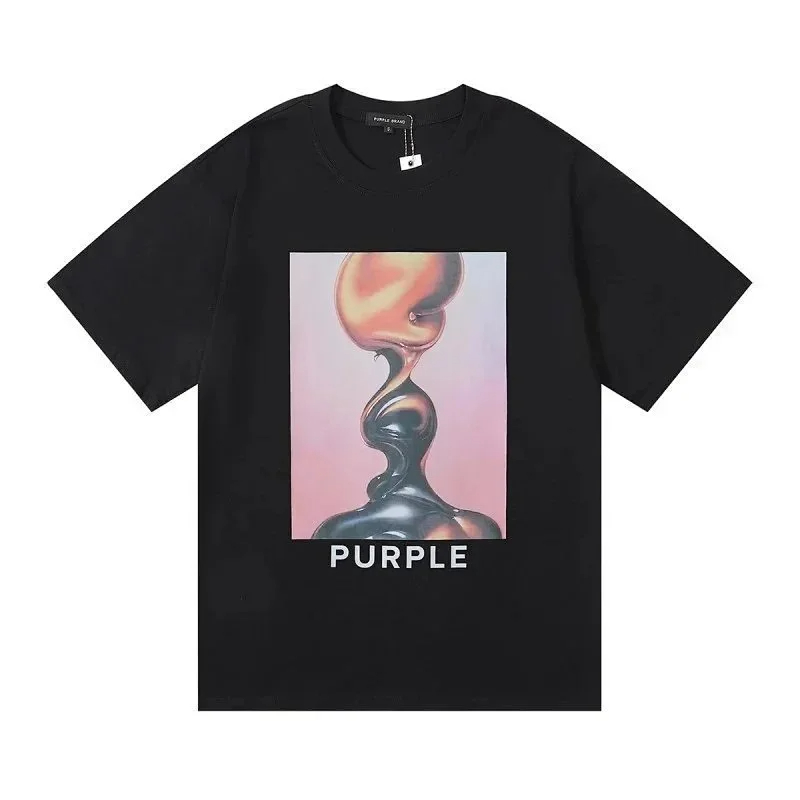 Home > PURPLE Letter pattern printed short-sleeved T-shirt for men and women American high street half-sleeve-1886