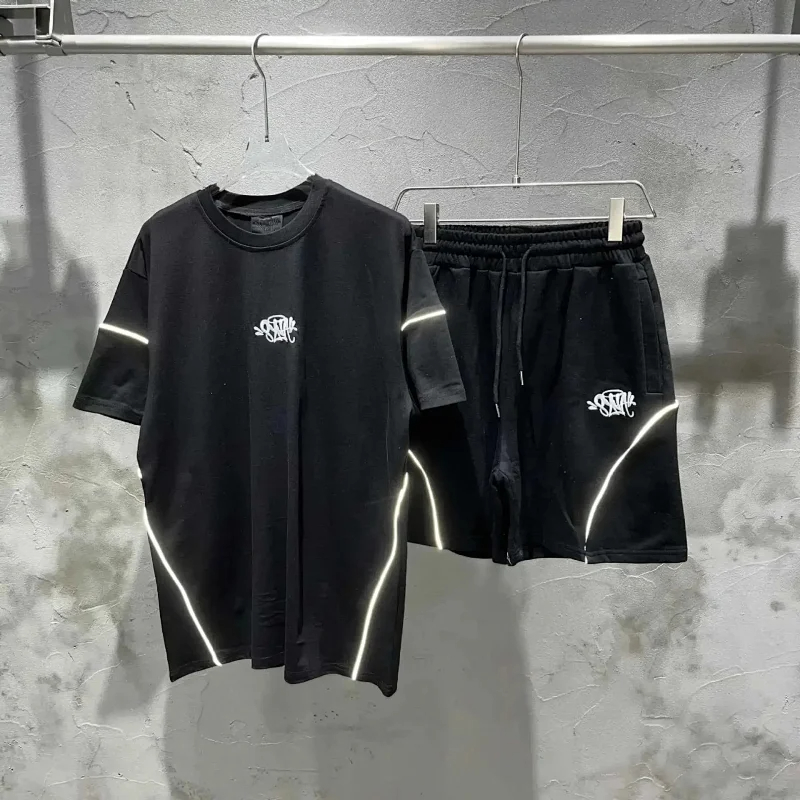 Trapstar Sword Reflective Print Lettering Short Sleeve T-Shirt Shorts Set-2827
