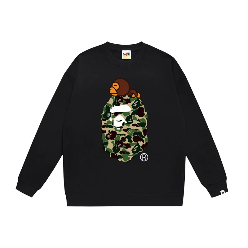 A BATHING APE BAPE Camouflage Letter Ape Print Crewneck Sweatshirt-5145