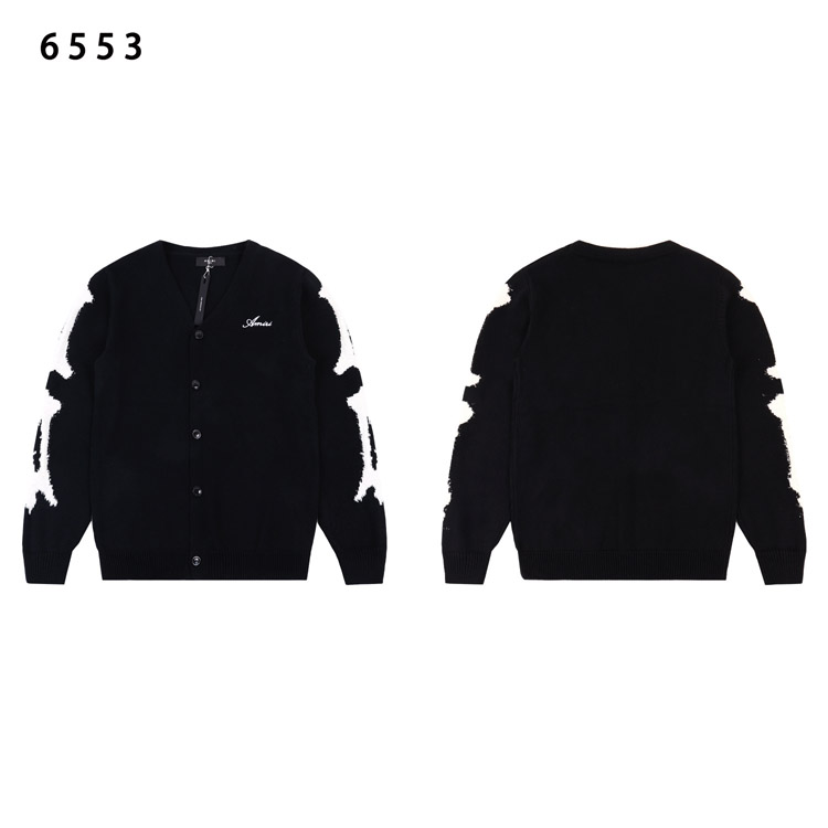 AMIRI Embroidered Logo Single-Breasted Cardigan V-Neck Long-Sleeve Knit Sweater-4558