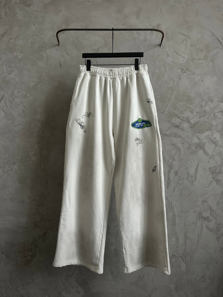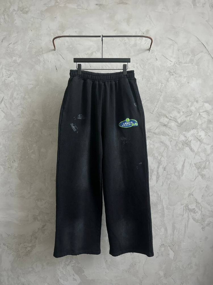 Balenciaga distressed letter embroidered straight-leg trousers-5450
