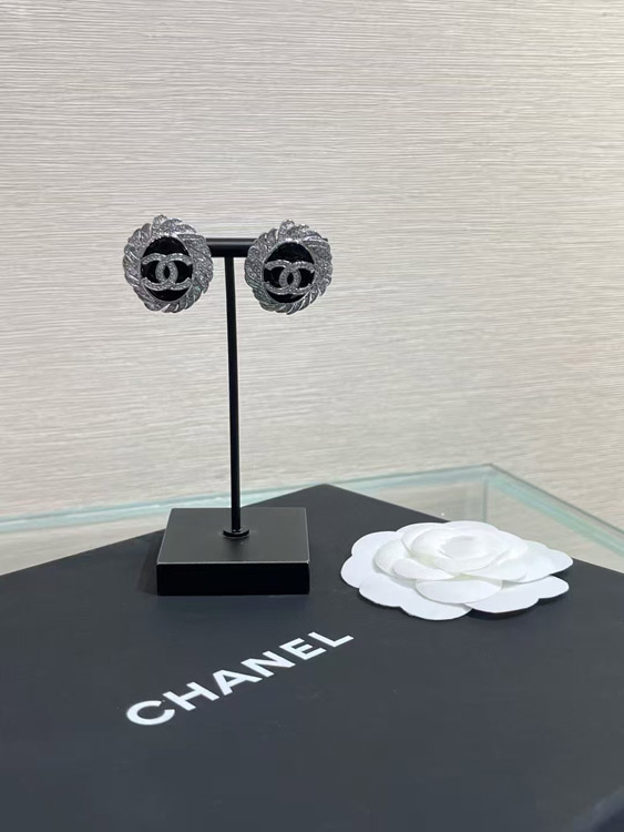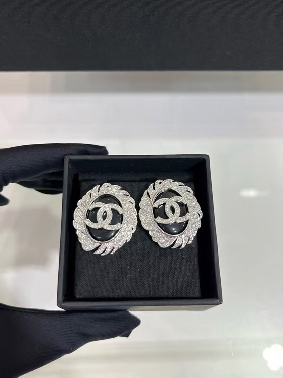 Home > Celine black oval button silver full diamond double C earrings-3900