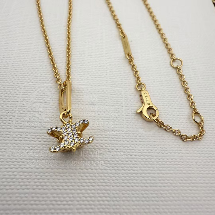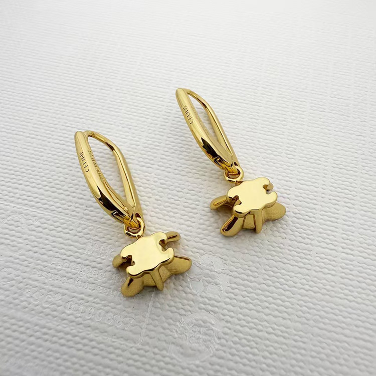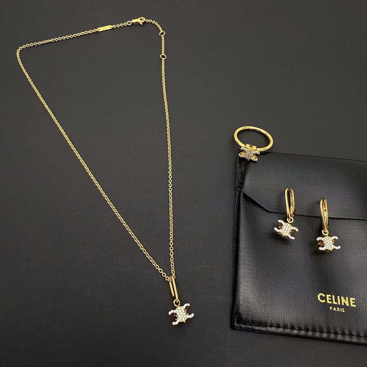 Celine Gold Arc de Triomphe Full Diamond Logo Necklace Earrings-3736