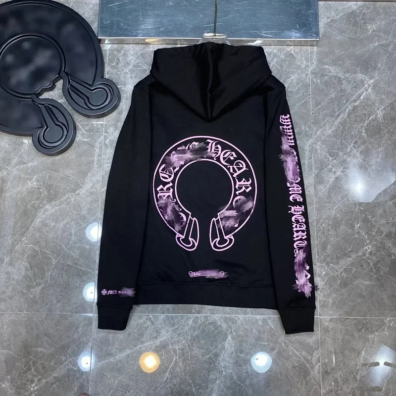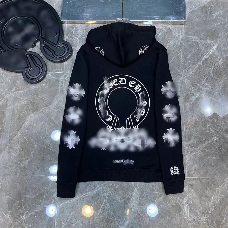 Chrome Hearts New Pure Cotton Cross American Horseshoe Printed Hooded Loose Sweatshirt-2524