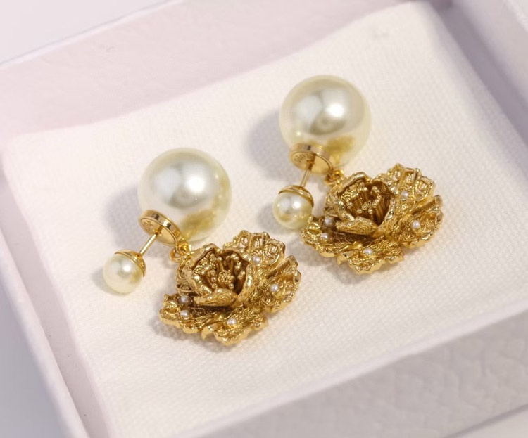 Dior large and small peony pearl earrings-3771