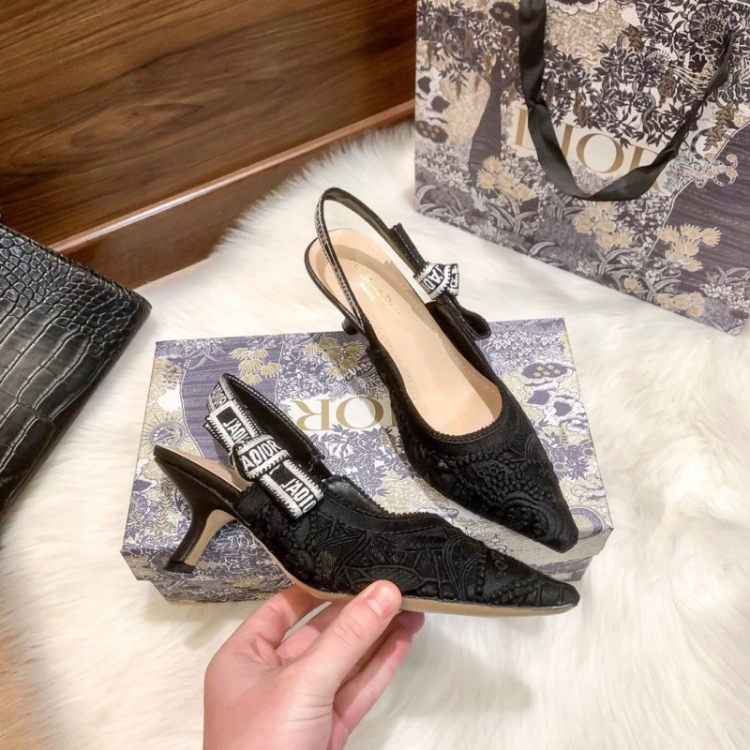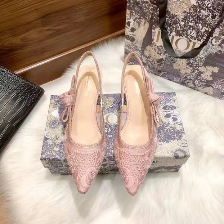 Dior's new lace pointed-toe slingback heels with a thin heel-5614