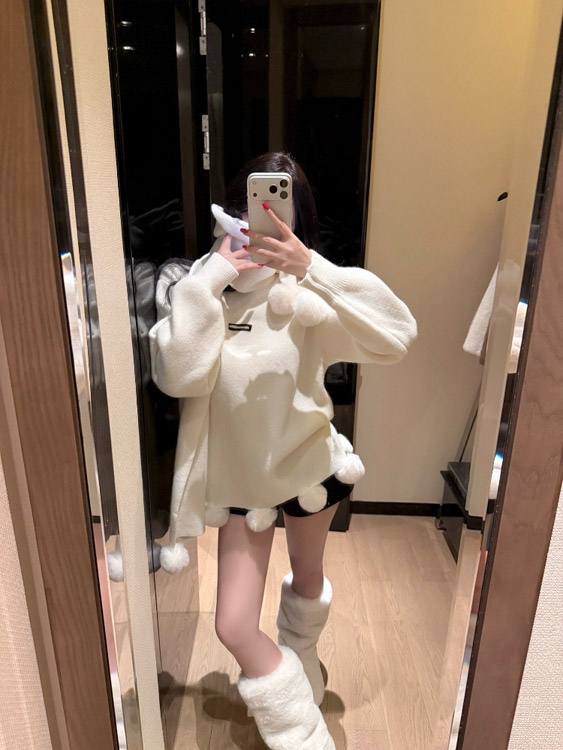 Miu Miu new arrival Rabbit fur pom-pom knitted sweater and scarf set (two-piece set)-5386