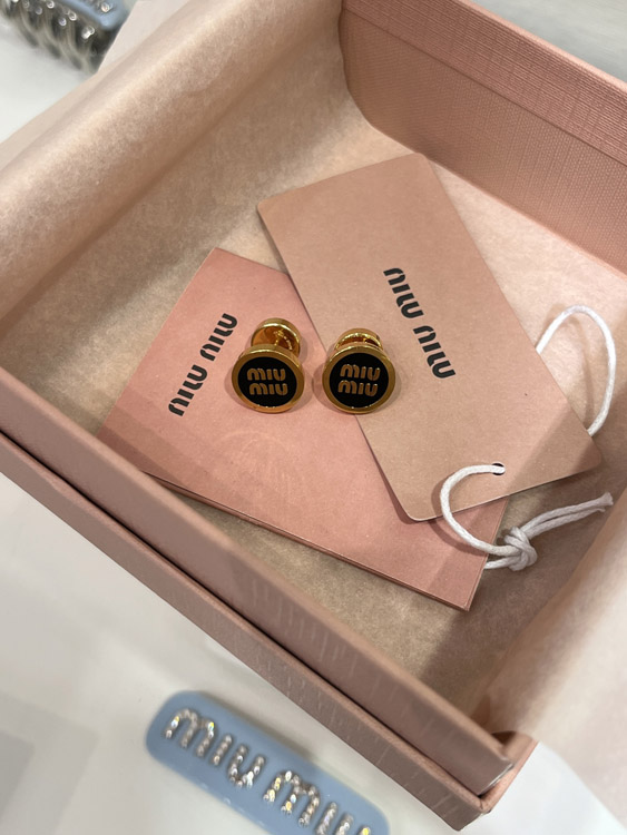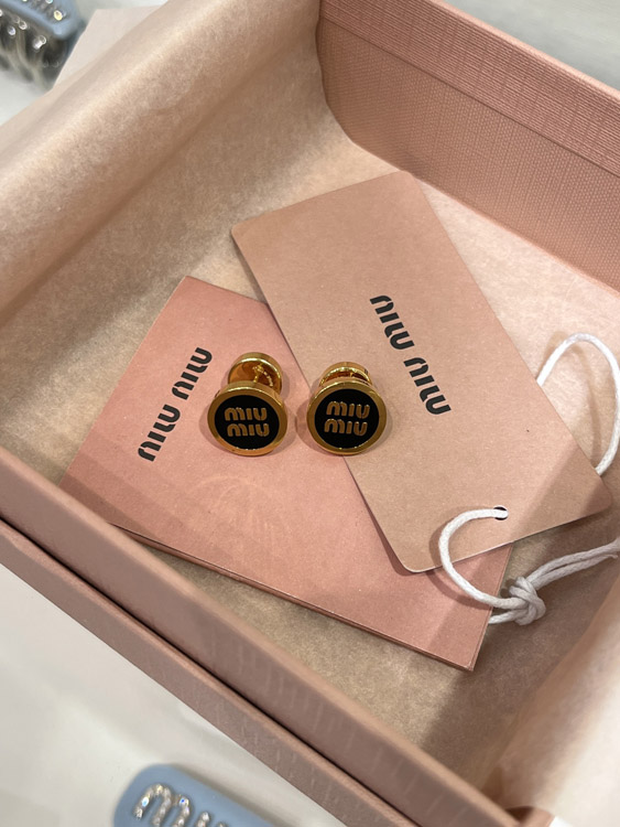 MIUMIU black enamel letter metal round button earrings-3893