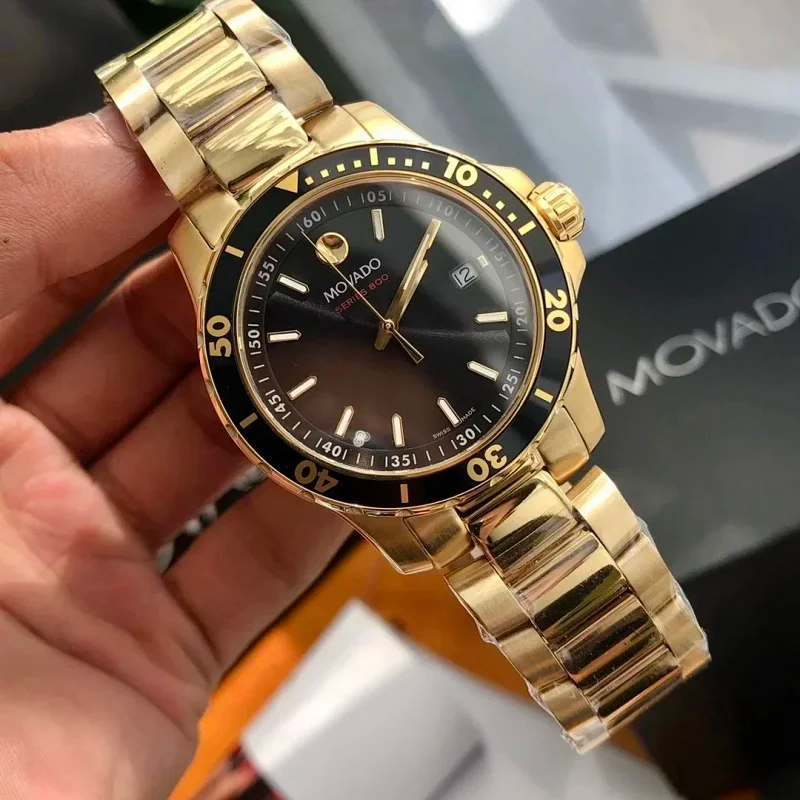 Home > Movado Swiss 4.1CM black gold dial gold strap men's sports watch (40 styles)-2082