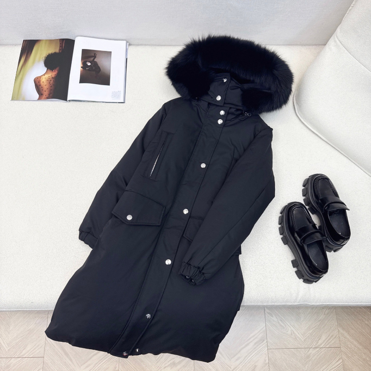 Home > Prada thick down coat with large fox fur collar and fitted waist-5352
