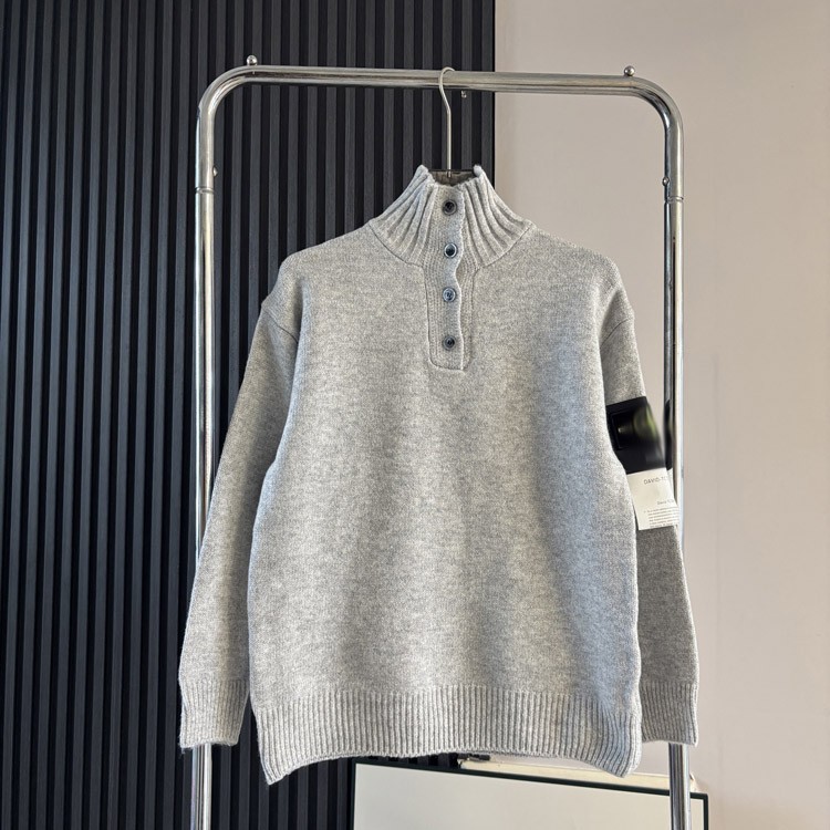 Stone Island solid color button-up stand-collar knitted cardigan-5234