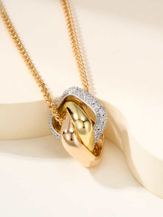 Tiffany cushion-shaped three-color ring diamond necklace-3680