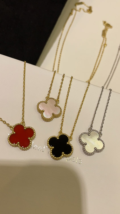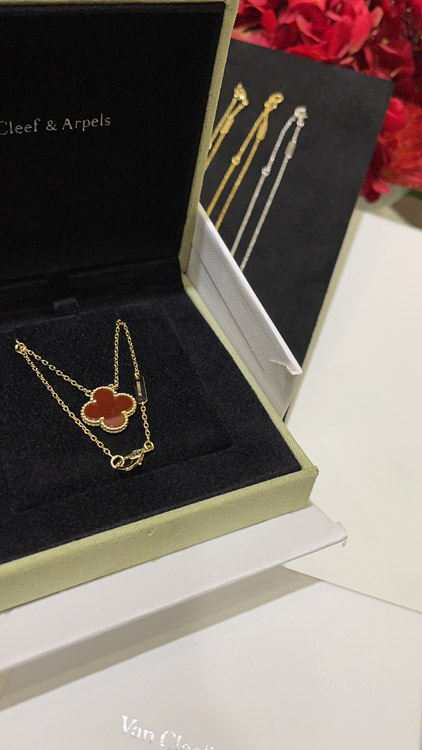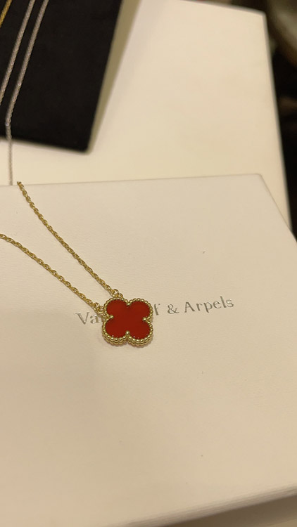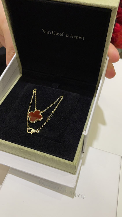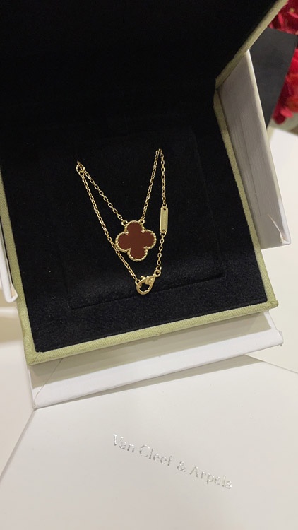 Home > Van Cleef & Arpels Carnelian Four-Leaf Clover Gold Necklace-3888