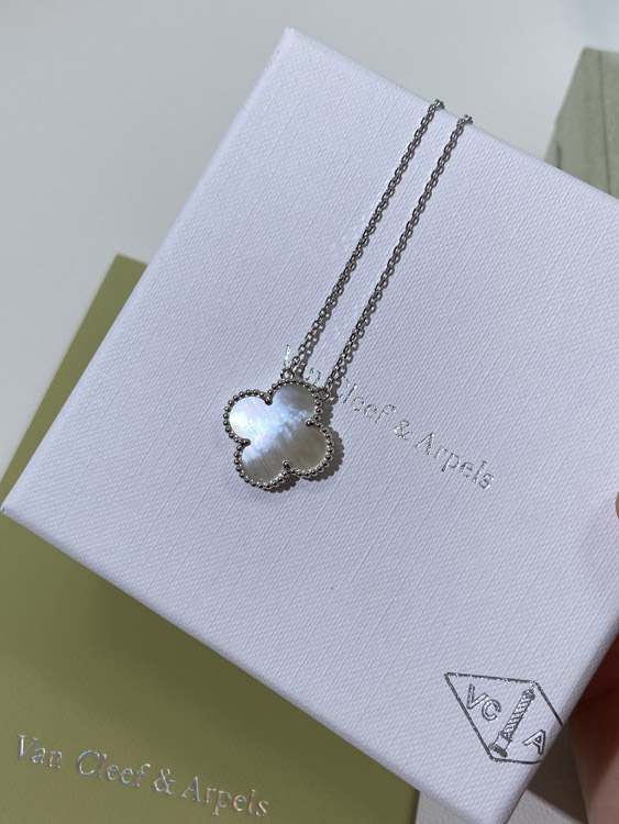 Home > Van Cleef & Arpels four-leaf clover white wide necklace-3788