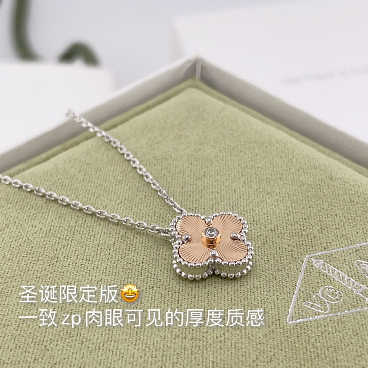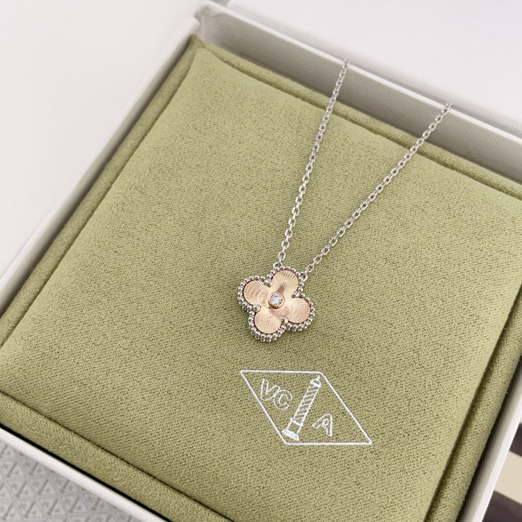 Home > Van Cleef & Arpels white gold and rose gold diamond four-leaf clover necklace-3833