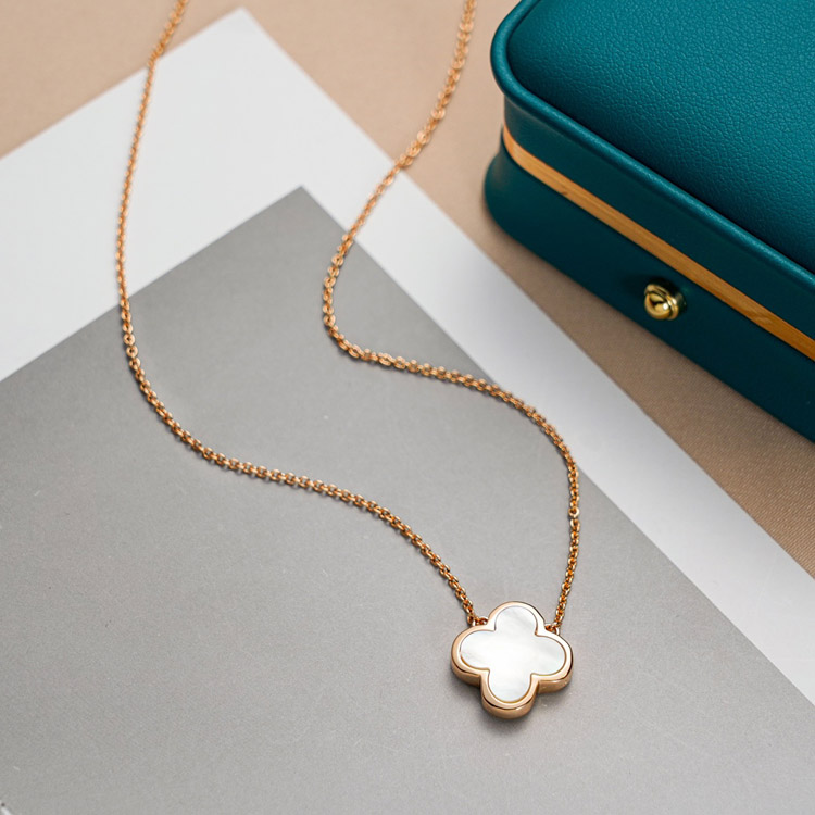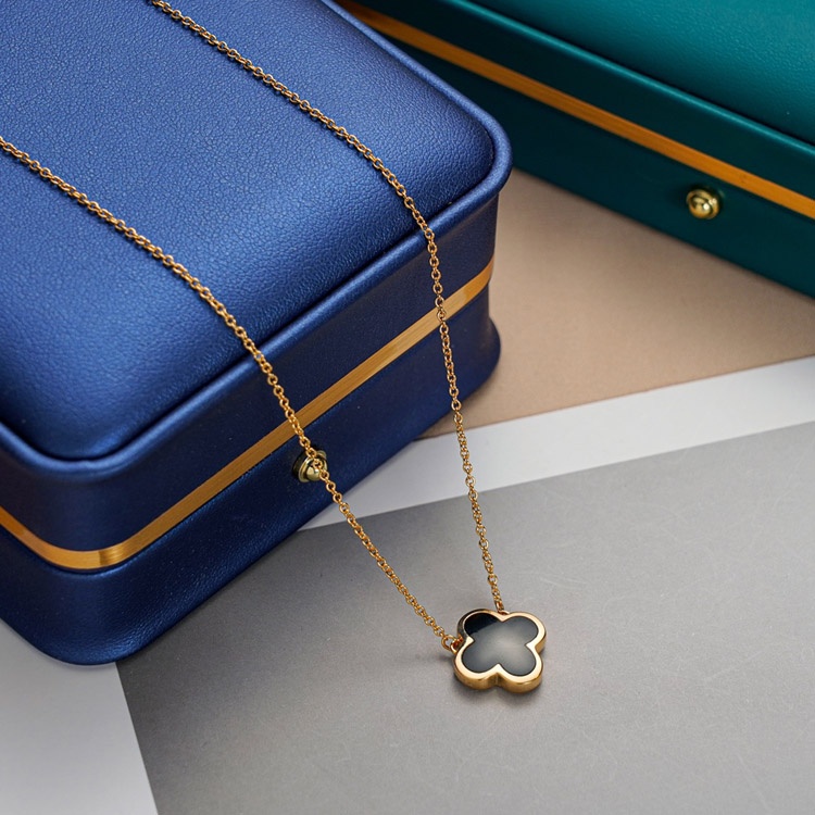 Home > Van Cleef & Arpels White Mother-of-Pearl Black Agate Single and Double-Sided Flower Necklace-3883
